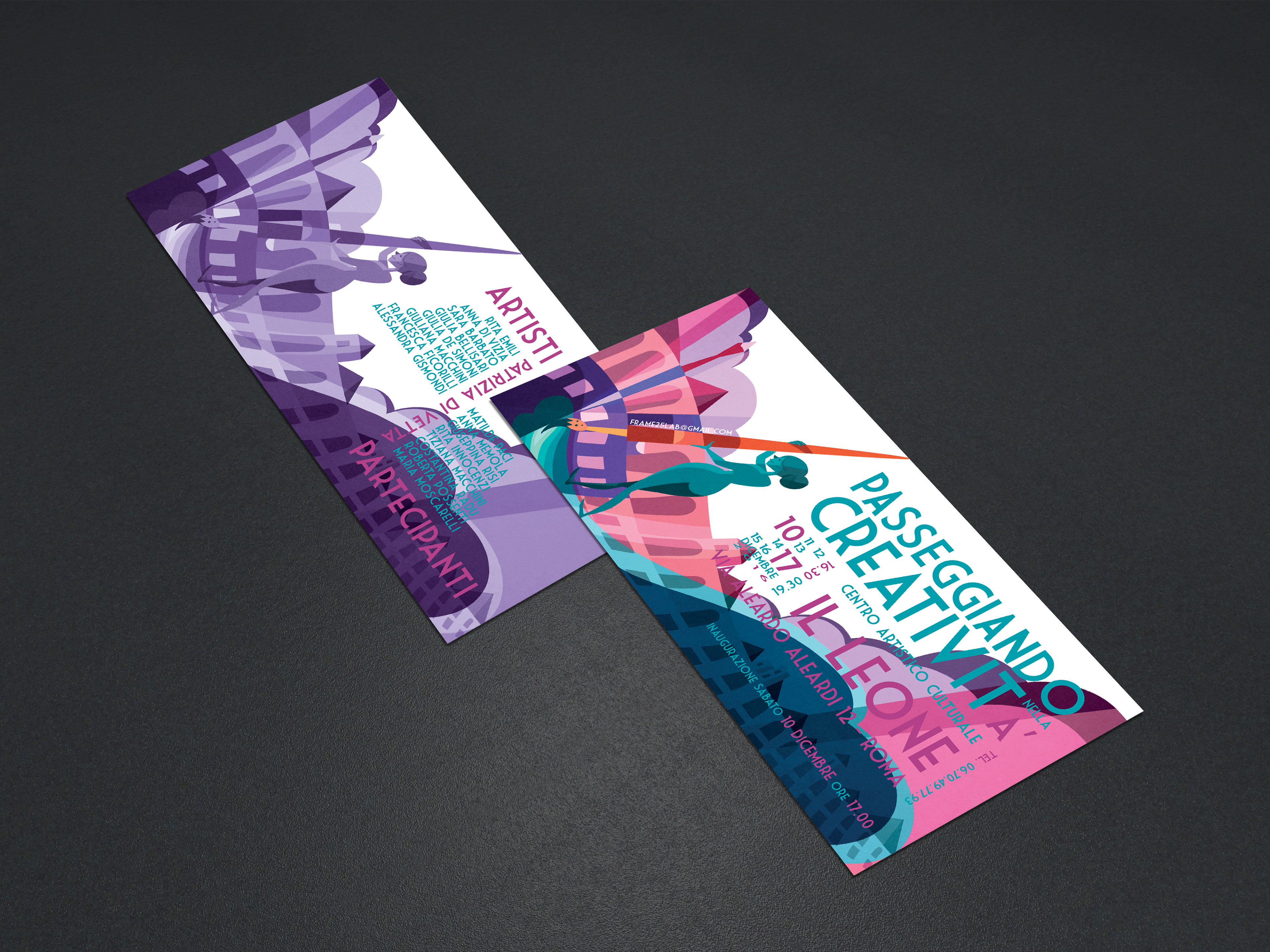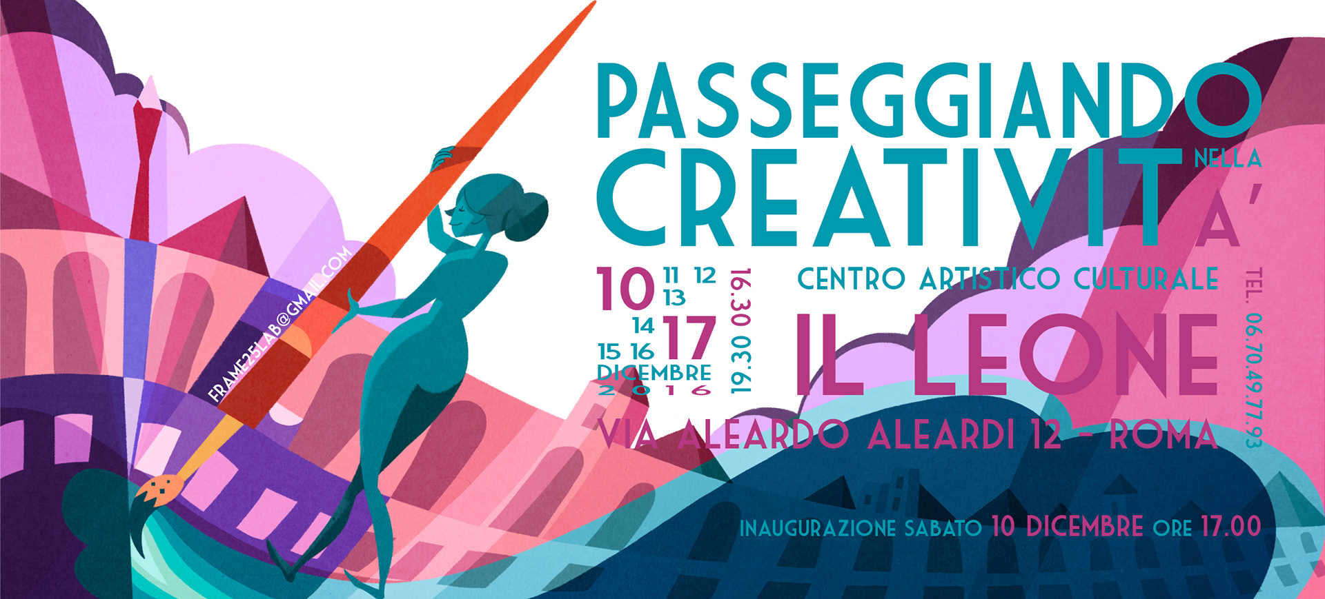 Design of poster and invitations of the exhibition "Passeggiando nella creatività" 2016
